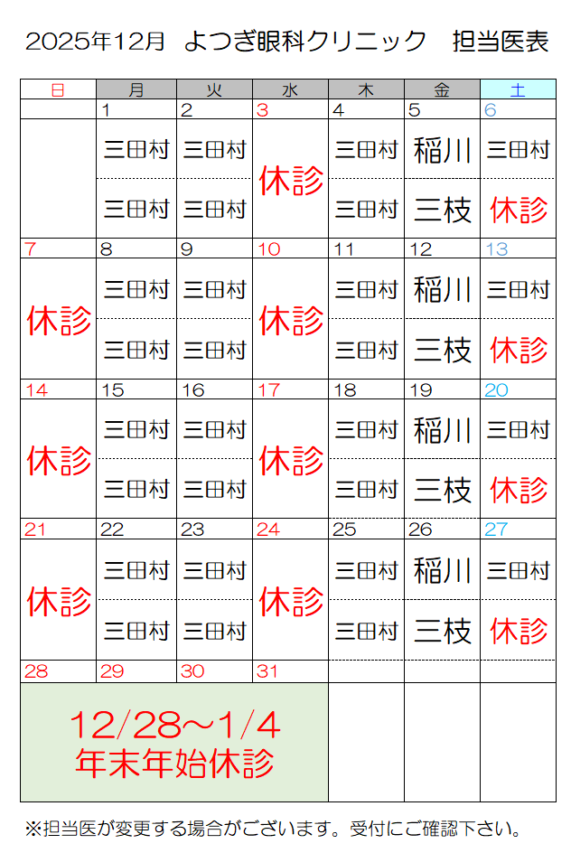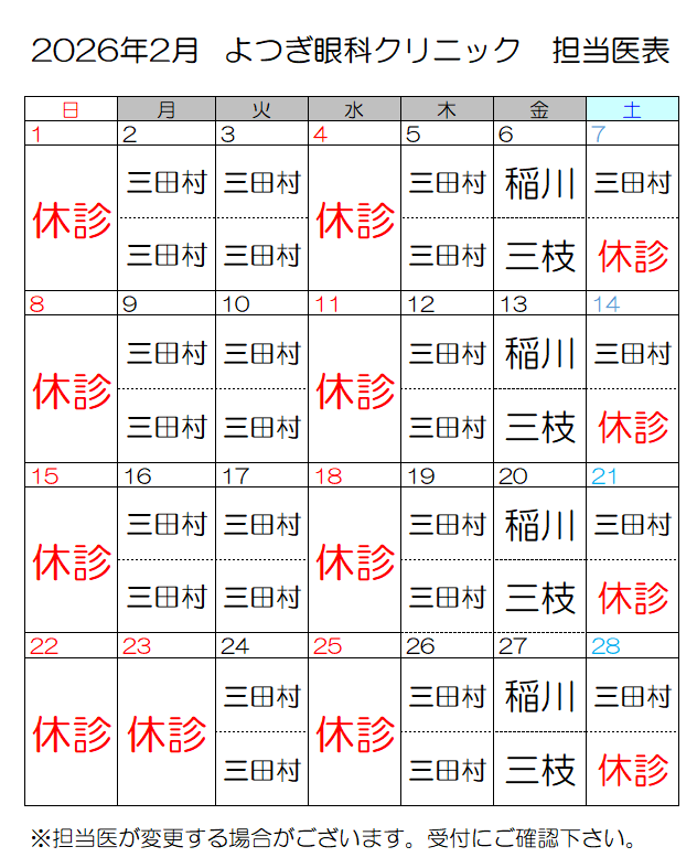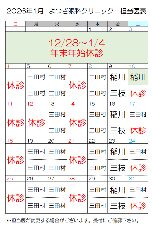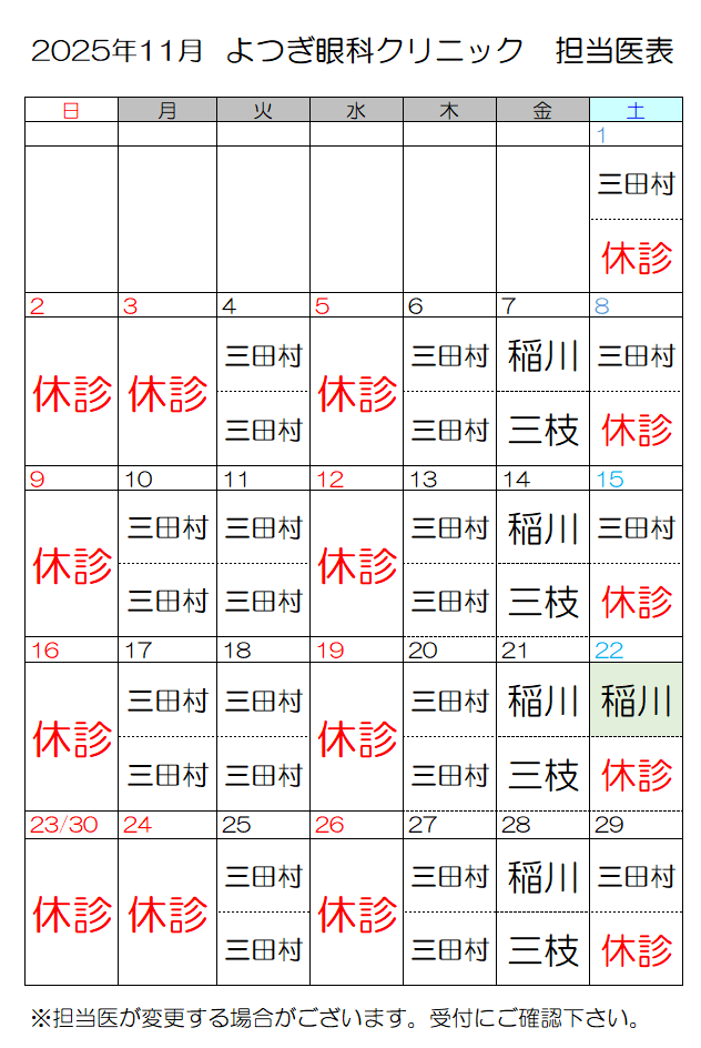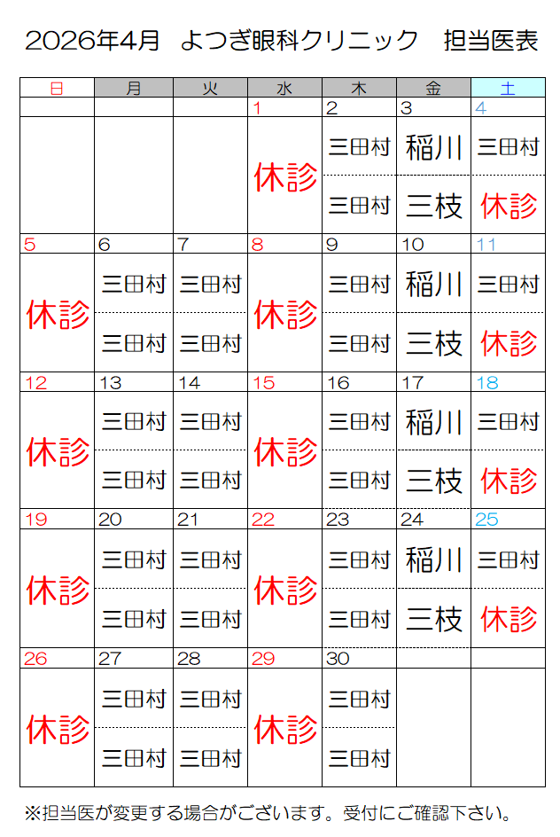 | 医院名 | 医療法人社団慈成会よつぎ眼科クリニック |